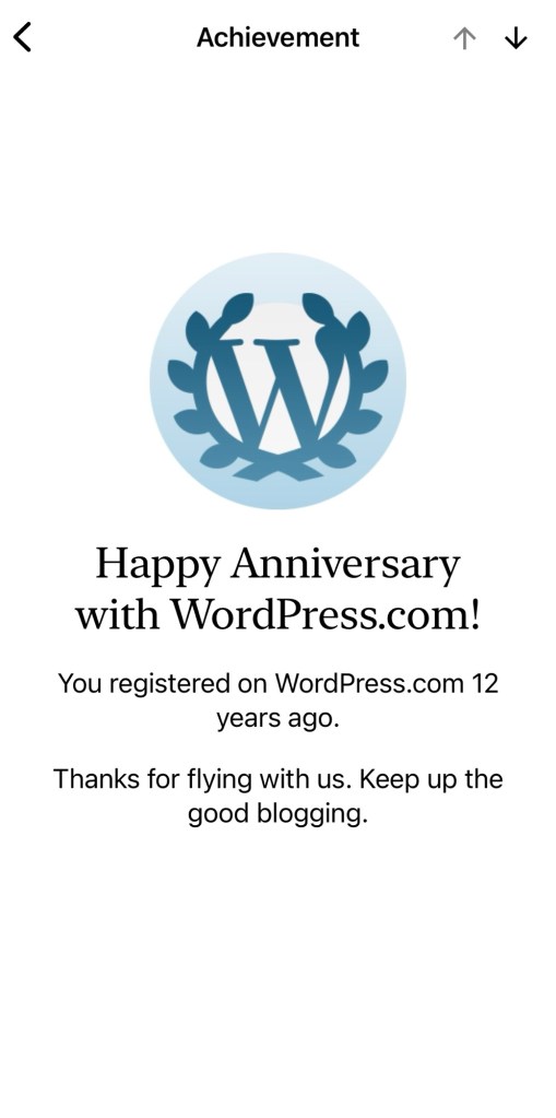 Probably one or two of you know I had a previous blog which is not deleted, but is archived. WordPress informed me today I started that blog twelve years ago.