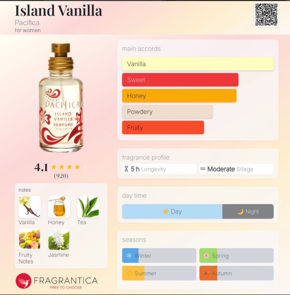 The description of the scent, as well as the perfume, can be found at pacificabeauty.com.