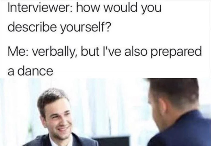 I have never been asked to describe myself while filling the tank with gas, for example.