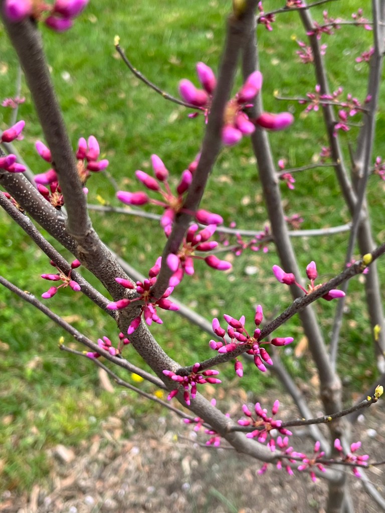 By March, I could see little nubs growing from the bark. I know what leaves look like when they are starting to form, and this wasn’t that. I think I did a dance on the front yard. No, I’m sure that I did. Certain that flower buds were forming on ERJ, my miracle Eastern Redbud that appeared years after the parent tree died, I began to document via photographs the bud formation. Without further ado, let me introduce you first to ER, then ER Junior.