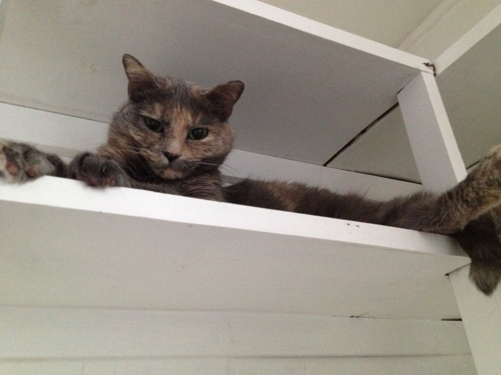 Anyway, as the kittens grew, we could no longer contain them to the guest room. We let them out to roam the house, but not before kitten-proofing everything. They are perpetual toddlers, remember. And yet, they still found ways to create havoc. The two boys, Rafa and Bubba were buds, and co-signed on most of the trouble. Susie quickly became pair-bonded to Mama Kitty. She would not leave her mama’s side. She loved her mother deeply, almost from the day she was born.