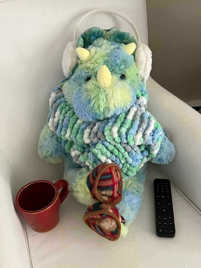 I did bring him back. I brought him back from the store to my house. He hardly eats anything, and he’s very quiet. He is rather lazy, though. We don’t often think of dinosaurs as being lazy, but Unisaurus is also part unicorn, and unicorns don’t have to do anything except be beautiful.